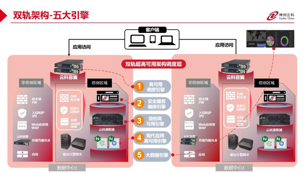数据中心架构在自主创新的过程中分解为现有架构的非信创区和信创区的两个业务区域,在每个数据中心分为信创区和非信创区后,在两个区域之间的跨区跨域协同方法,yl23411永利顺利获得5大引擎实现多层次的应用可持续性实践。